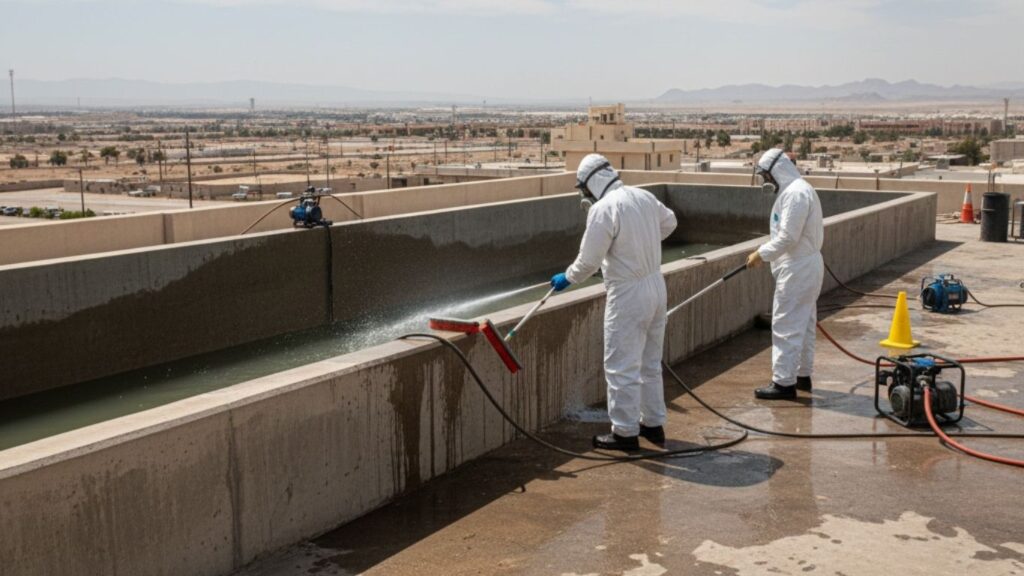 We specialize in cleaning and sanitizing water tanks for commercial establishments, following Sharjah Municipality guidelines and industry-standard safety protocols.
